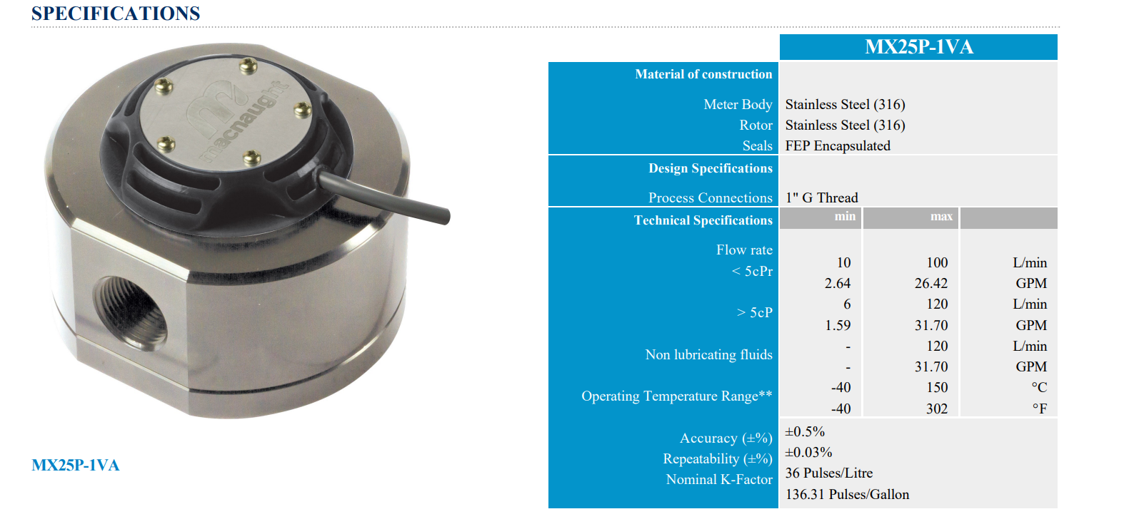 The MX Series 1" DIGITAL FLOW METER are suitable for flows between 6 - 120 L/min (1.59 - 31.70 GPM), providing highly accurate flow measurement performance.