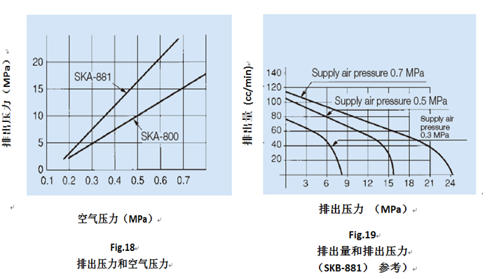 SKB-881是连续工作的往复式气动型润滑泵,根据供气压力的大小,油泵的排出压力和流量相应变化,参见下图表。